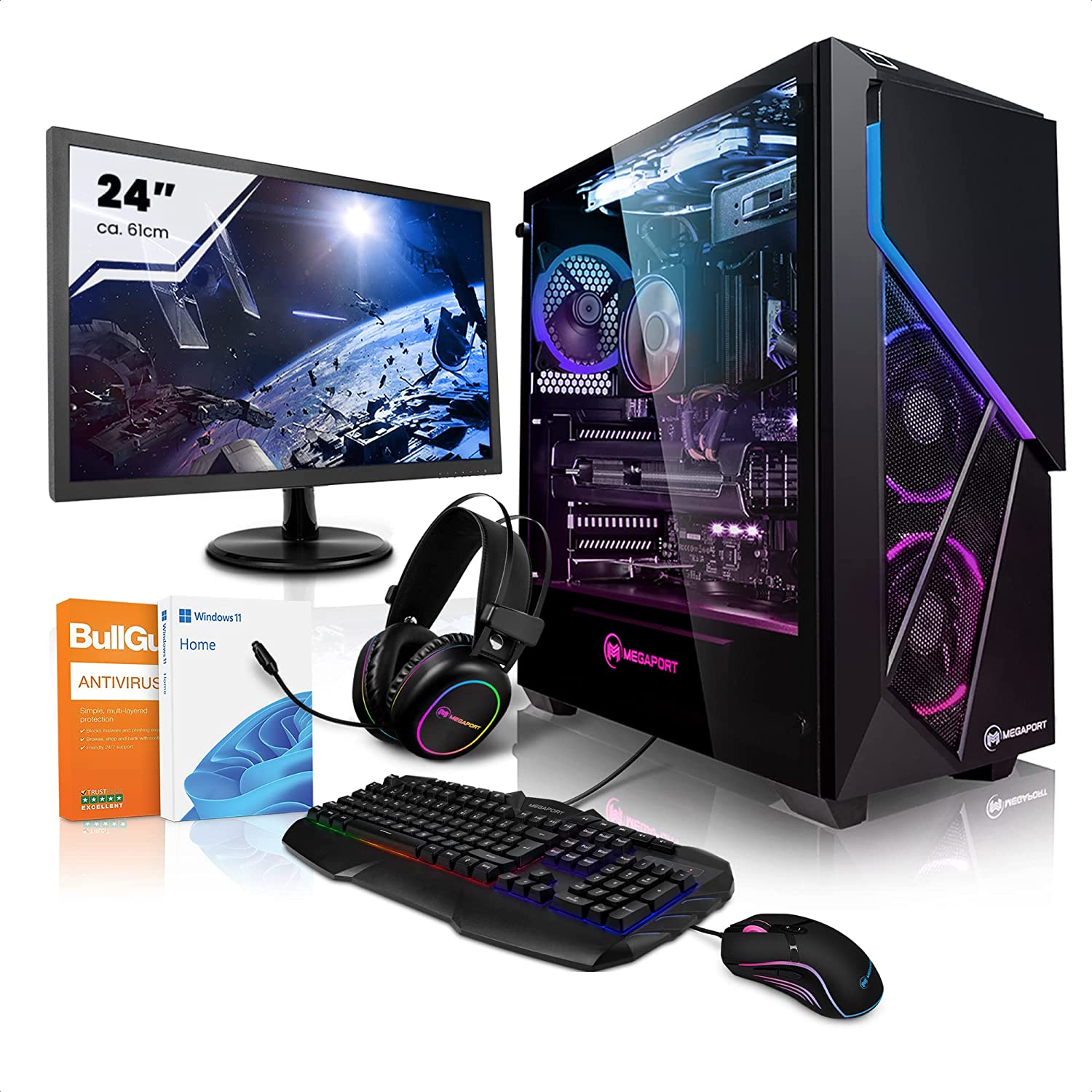 Completo Gaming – Megaport PC Striker AMD Ryzen 7 3700X 8X 4.40GHz • 24″ Pantalla • Windows 11 • GeForce RTX2060 • 16GB DDR4 • 1TB M.2 SSD • 2TB HDD • Teclado y ratón Gaming • Completo Ordenado